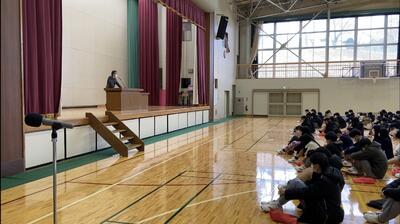 12月16日(金),18歳で有権者となる生徒たちに対して,歴史的なこともふまえた視点から,選挙に対する理解を深め,主権者としての自覚・意識向上を図ることを目的として,シチズンシップ講演会が開催されました。対象は第2年生徒全員,講師は吉野作造記念館館長 氏家 仁 氏でした。また同じ日に,第1学年においてこれまでの探究活動を振り返る中間発表会が行われました。