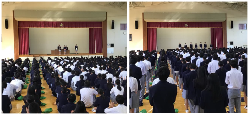 後期始業式では、校歌斉唱に続き、校長より、将来に向けて学校生活で大切にして欲しい次の4点について講話がありました。