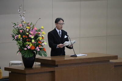 校長式辞の中で「これまでお世話になった方々へ感謝の気持ちを伝えてほしい。そしてこれからの社会と向きあっていくため、『unlearn』を手がかりに、これまでの先入観や思い込みをなくし、自由で、これまでにない発想を持ってください。」との餞の言葉が卒業生に向けて贈られました。また、卒業生代表の川田さんが,三年間の行事や学校生活など、様々な場面を振り返りながら、仲間、後輩、先生方や保護者への感謝の言葉を答辞の中で述べました。