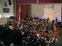 後半には、本校吹奏楽部とコラボし、「宝島」を演奏しました。