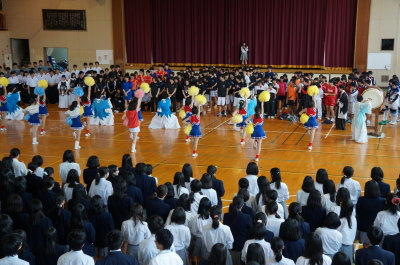 各部からの決意表明の後,応援団・チアリーダー・全校生徒から選手にエールが贈られました。
