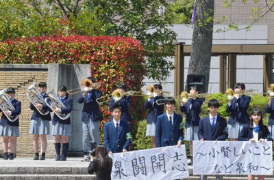 吹奏楽コンクール地区大会に参加する吹奏楽部の健闘を祈って,熱いエールを送りました。