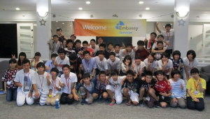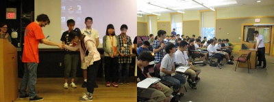 夕食後は,イブニングアクティビティを行いました。いまのところ日本の生徒同士の交流が多いのですが,明日からの研修では他国の研修生や現地のアメリカ人との交流が期待できそうです。
