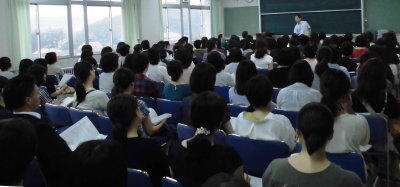 生徒たちは明日からの学習に役立てようとメモを取りながら熱心に講師の話に耳を傾けていました。