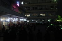 全校の照明を落とし,真っ暗になった昇降口前には約100人の生徒が集まりました。吹奏楽部のファンファーレを合図に,集まった全員でカウントダウン。昇降口やロータリーに飾り付けられた電飾が一斉に点灯されました。点灯式では吹奏楽部のミニコンサートも開かれ,多くの生徒がイルミネーションの暖かな光と吹奏楽部の楽しい演奏に心を癒やされるひとときとなりました。澄んだ星空の下,夕刻の館高昇降口は赤や青の華やかな輝きに包まれました。