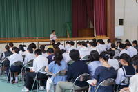間近に控えた参議院議員選挙の政党,候補者の公約の違いなどにも触れ,18歳で有権者となるにあたり,歴史的なこともふまえた視点から選挙について解説をしていただきました。年代により投票率に差があることに触れ「未来を明るくするために,常に正しきを求めていく態度をもってほしい。」とお話しになりました。18歳で有権者となることへの自覚が高まる内容でした。