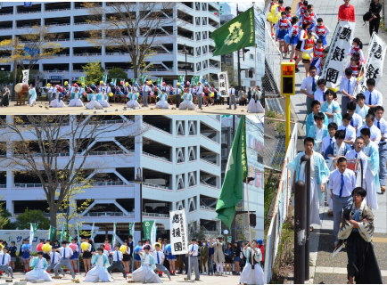 本校からも応援団,チアリーダー,生徒会役員が参加して,5月1日(月)に行われる泉三校定期戦へ向けたパレードが晴天のもと行われました。三校による華やかなエール交換にたくさんの方々から拍手をいただきました。