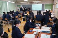 生徒は「国際社会とグローバルイシュー」「がん薬物療法研究と応用」「食品開発学」「教育心理」など,全18分野の多様なテーマの講義から,自分の興味や関心のある講義を選び受講しました。実際に大学で行われている90分間の講義が長く感じた生徒が多かったようですが,大学での学びをイメージしながら熱心に講師の授業に耳を傾けていました。