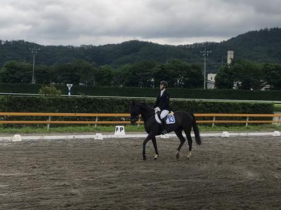 大会は,馬場馬術と障害の2種目で争われました。どんよりとした曇り空のもと,前日の雨の影響もあり馬場は不良で,あいにくのコンディションとなりました。馬もスピードが出ると滑って転倒しやすく,足元を気にしながら走る中,大和田君は落ち着いた手綱さばきで馬をコントロールし,見事に優勝の栄冠を勝ち取りました。