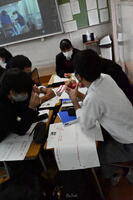 各教室で『カタリバ』スタッフからのオンライン配信授業を受けた後,友達の力を借りながらお互いに個人の探究テーマの「問い」を深め,実際に校外に出て調査する計画やアポイントを取る計画などを立てました。この日は第2学年の先生方に加えて,社会で活躍している3名の館高卒業生が来校し,各教室を回りながら生徒の質問や相談に乗ってくれました。