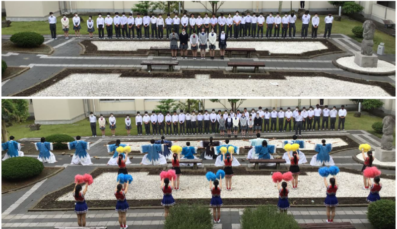 県総体において、陸上競技の男子三段跳びで第5位、弓道の女子団体で第2位となり、それぞれ東北大会に出場します。全国高等学校野球選手権宮城大会に出場する野球部も含めて、それぞれの部から決意表明があり、応援団とチアからエールを受けました。