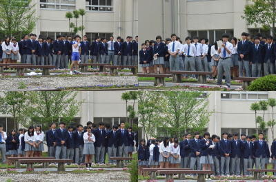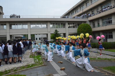 各部の健闘を祈って全校生徒で激励エールを送りました。