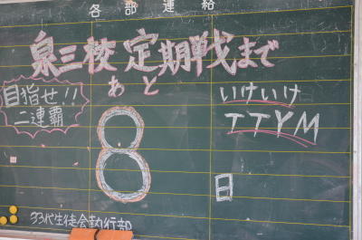 来る平成28年5月1日(日)に行われる第31回泉三校定期戦に向けて全校生徒が集まって壮行式が行われました。