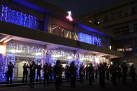 イルミネーションは、生徒会や有志実行委員によって例年この時期に行われている恒例行事。クリスマスシーズンの夕刻,様々な色の電飾に彩られた校舎が夜空に映え,校舎前一帯は幻想的な雰囲気に包まれます。今年は昇降口前だけでなく中庭にも電球を施しパワーアップしたイルミネーションとなっています。