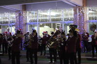 この日の点灯式では,実行委員長のあいさつの後、カウントダウンから点灯。恒例の吹奏楽部による演奏も行われ,校舎前に集まった多くの生徒とともに盛り上がりました。
