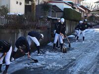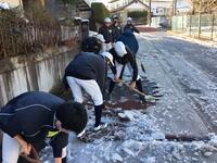 気温が少し上がった今日の放課後,野球部の部員と顧問の先生が校内のスコップをかき集め,氷雪除去のボランティア活動を行ってくれました。スコップを何度も路面に強く打ち付け,堅く固まった氷雪を一つひとつ砕いて取り除く作業でした。