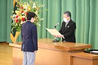 今年度は,新型コロナウイルス感染防止のため在校生は出席せず,保護者が1名までと座席の間隔を確保しての実施となりました。