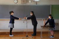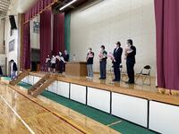 今回も新型コロナウイルス感染防止のため,体育館での大規模な集会の実施を控え,YouTubeライブを活用して各教室へオンライン配信で実施しました。賞状伝達と校長講話が行われ,その後各教室で最後のホームルームが行われました。各教室でのホームルームでは,担任の先生からこの1年間の振り返りや来年度への期待が語られました。