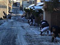 気温が少し上がった今日の放課後,野球部の部員と顧問の先生が校内のスコップをかき集め,氷雪除去のボランティア活動を行ってくれました。スコップを何度も路面に強く打ち付け,堅く固まった氷雪を一つひとつ砕いて取り除く作業でした。