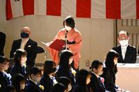 校長先生からは「学びは一生続く。これからの予測不能な時代,自ら問う力が求められる。よりよい未来を切り開くため,優れた学習者たれ。」との餞の言葉が卒業生に向けて贈られました。また,在校生代表の花坂君が「先輩方の築いた伝統を守り,受け継ぎ,後輩達の手品となるよう精一杯頑張る。」との送辞を述べ,卒業生代表の高杉さんが,三年間の行事や学校生活など,様々な場面を振り返りながら,仲間,後輩,先生方や保護者への感謝の言葉を答辞の中で述べました。