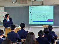住友商事株式会社によるキャリア教育支援事業の一環として実施されたもので,当日はグローバルに活躍する30代の現役商社マン3名が講師となり,「働くことの意義」や「仕事を通した社会との関わり」について学び,「変化の激しい時代に求められる能力・スキル」を講義とグループワークで学びました。全体会終了後の座談会では、熱心な生徒からのたくさんの質問に,3名の講師が丁寧に熱く回答していました。