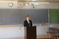 例年は全員が体育館に集まり集会形式で実施していましたが,今年度は新型コロナウイルス感染症防止のため,Youtubeライブを利用した各教室へのライブ配信で実施されました。