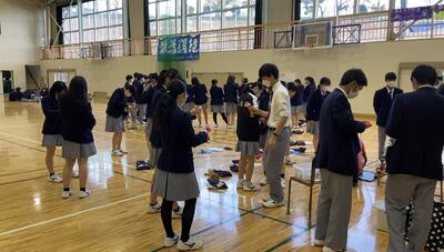 9月7日(水)に,生徒会役員選挙が行われました。2,3年生の生徒は体育館で,1年生の生徒は教室でZOOMによる中継で,立候補者の演説を聴きました。その後投票が行われ,生徒会長1名副会長2名書記2名会計2名応援団長1名が信任を得ました。新役員のリーダシップに期待します!