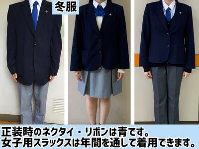 女子の制服にはスラックスもあり、1年中着用することができます。